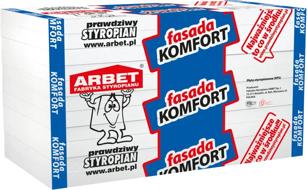Styropian elewacyjny Fasada KOMFORT znajduje szerokie zastosowanie w realnych projektach dociepleń ścian metodą lekką mokrą (ETICS/BSO) oraz lekką suchą jak i w zabudowie szkieletowej, warstwowych ścianach trójwarstwowych a także w miejscach narażonych na mostki cieplne – wieńce, nadproża, ościeża. W projektach, w których istotna jest jednolita izolacja cieplna bez przerw i szczelin, biały styropian na elewację od Arbet skutecznie wypełnia przestrzeń, minimalizując straty energii. Komfort montażu zapewnia możliwość układania płyt opcjonalnie frezowanych, co eliminuje mostki termiczne dzięki czemu izolacja jest szczelniejsza. Fizyczna lekkość materiału ułatwia przenoszenie i przycinanie na miejscu budowy, wymiarowanie co 10 mm daje swobodę doboru grubości według najnowszych wytycznych termomodernizacji. Styropian elewacyjny stanowi więc realne wsparcie dla wykonawców i inwestorów dążących do estetycznego, szczelnego i energooszczędnego ocieplenia domu.