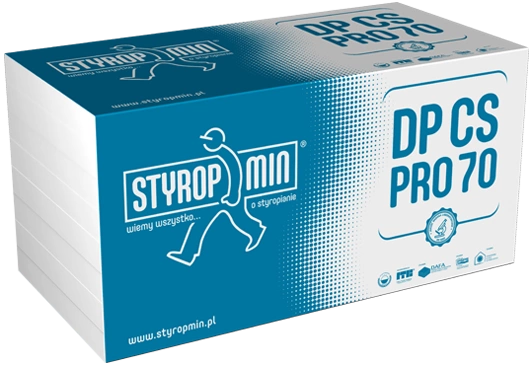 Styropian DP CS PRO 70 firmy Styropmin cechuje wytrzymałość na ściskanie 70 kPa, przez co idealnie pasuje do ocieplenia podłogi i dachu wymagającej mniejszego obciążenia. Produkt jest wytrzymały, jego odporność na obciążenie to 2,1 tony nacisku na metr kwadratowy. Lambda styropianu wynosi 0,038