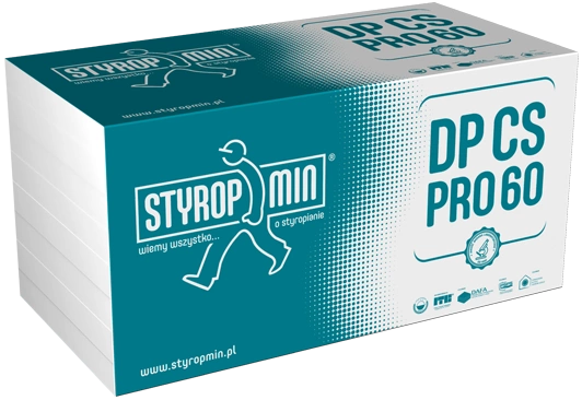 Styropian biały DP CS PRO 60 firmy Styropmin cechuje wytrzymałość na ściskanie 60 kPa, przez co idealnie pasuje do ocieplenia podłogi i dachu wymagającej mniejszego obciążenia. Produkt jest wytrzymały, jego odporność na obciążenie to 1,8 tony nacisku na metr kwadratowy. Lambda styropianu wynosi 0,040
