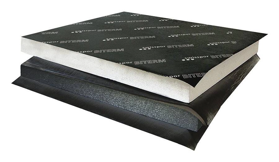 • Swisspor BITERM ® EPS 100 dach podłoga to warstwowe płyty izolacyjne z rdzeniem ze styropianu, w okładzinie z termozgrzewalnej papy asfaltowej. Rdzeń płyt wykonany jest z płyt styropianowych o naprężeniu ściskającym przy 10% odkształceniu względnym 100 kP